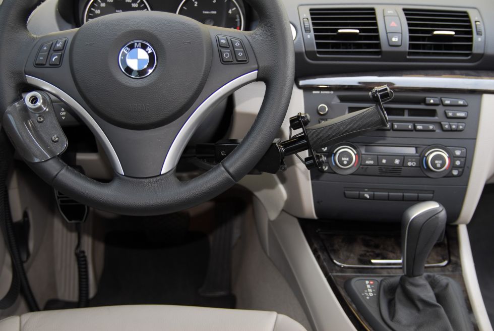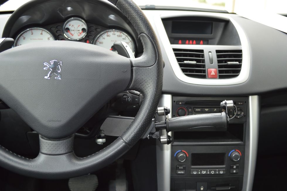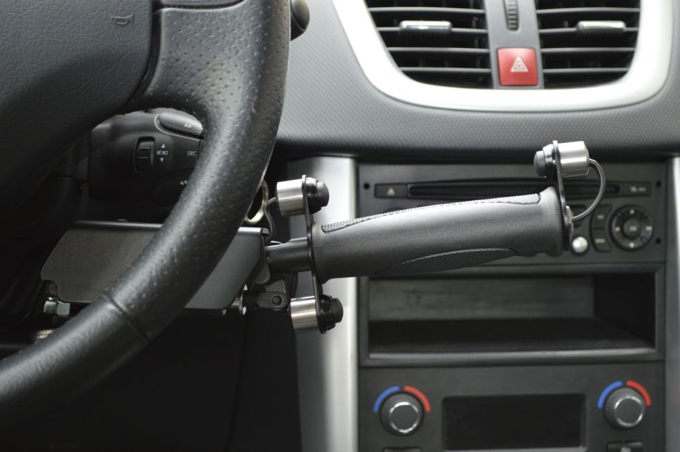 Grâce à un interrupteur judicieusement placé, la pédale d’accélération redevient fonctionnelle, rendant à un conducteur valide la possibilité de conduire tout à fait normalement.