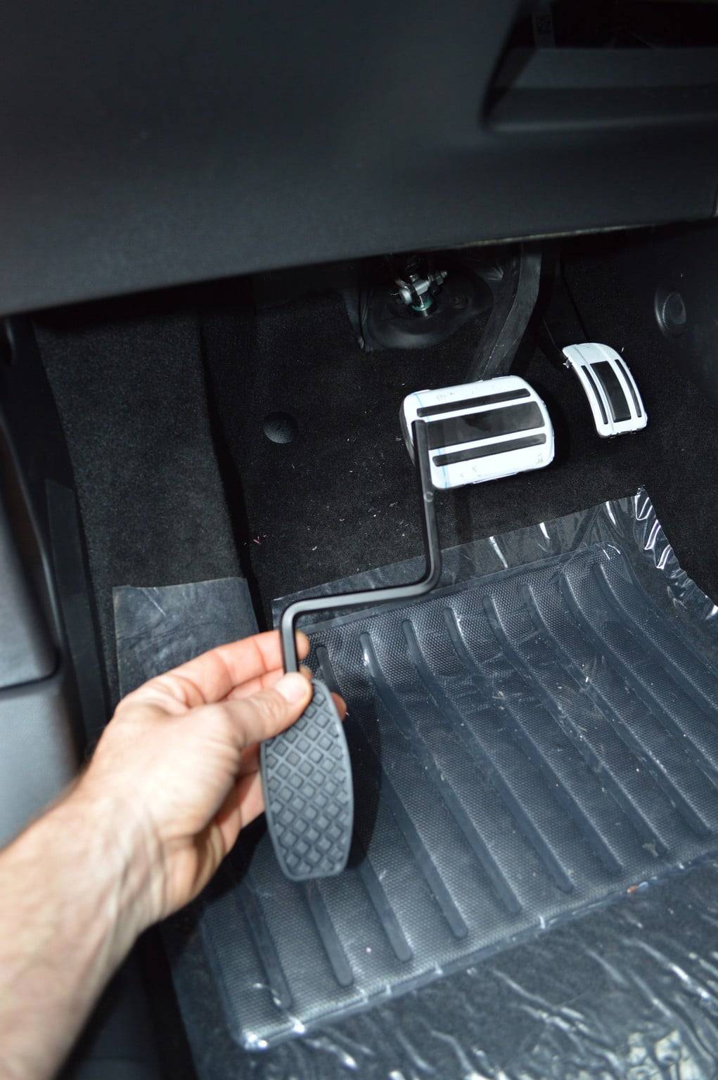 Concrètement, deux pédales d’accélérateur similaires seront présentes, à gauche et à droite du frein d’origine. Puisqu’elles ne doivent pas être fonctionnelles à la fois, un interrupteur permet de sélectionner celle qui convient. Aucun montage ou démontage, avant de conduire, ni pour le conducteur principal, ni pour le secondaire.