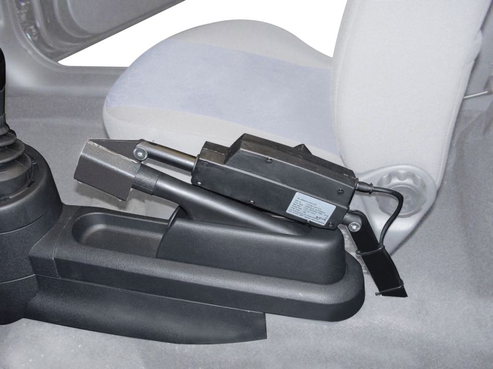 S’activant avec à un interrupteur situé sur le tableau de bord, cette aide à la conduite fonctionne grâce à un système de vérin électrique et s’adresse donc, principalement, aux personnes hémiplégiques ou amputées.