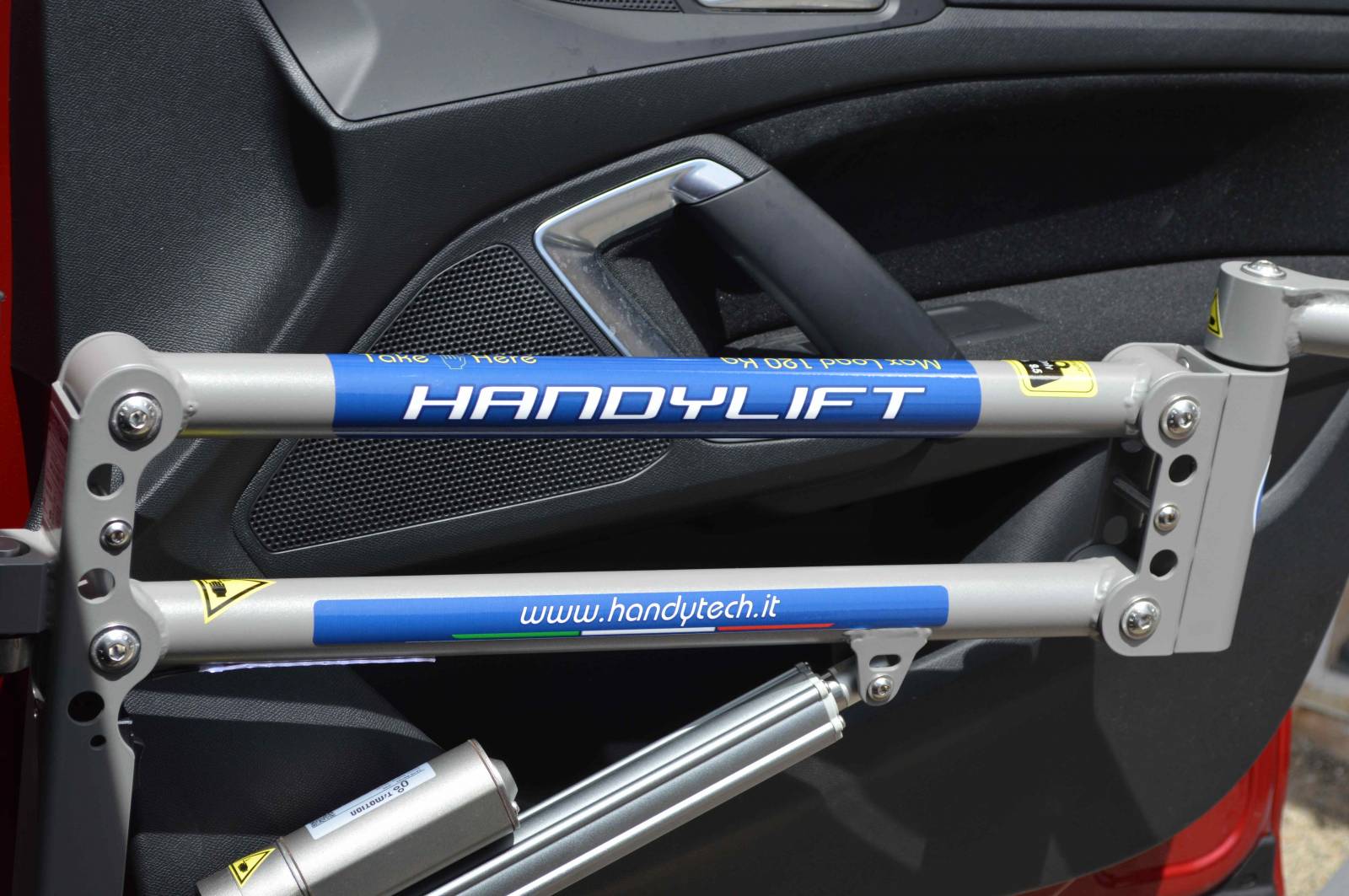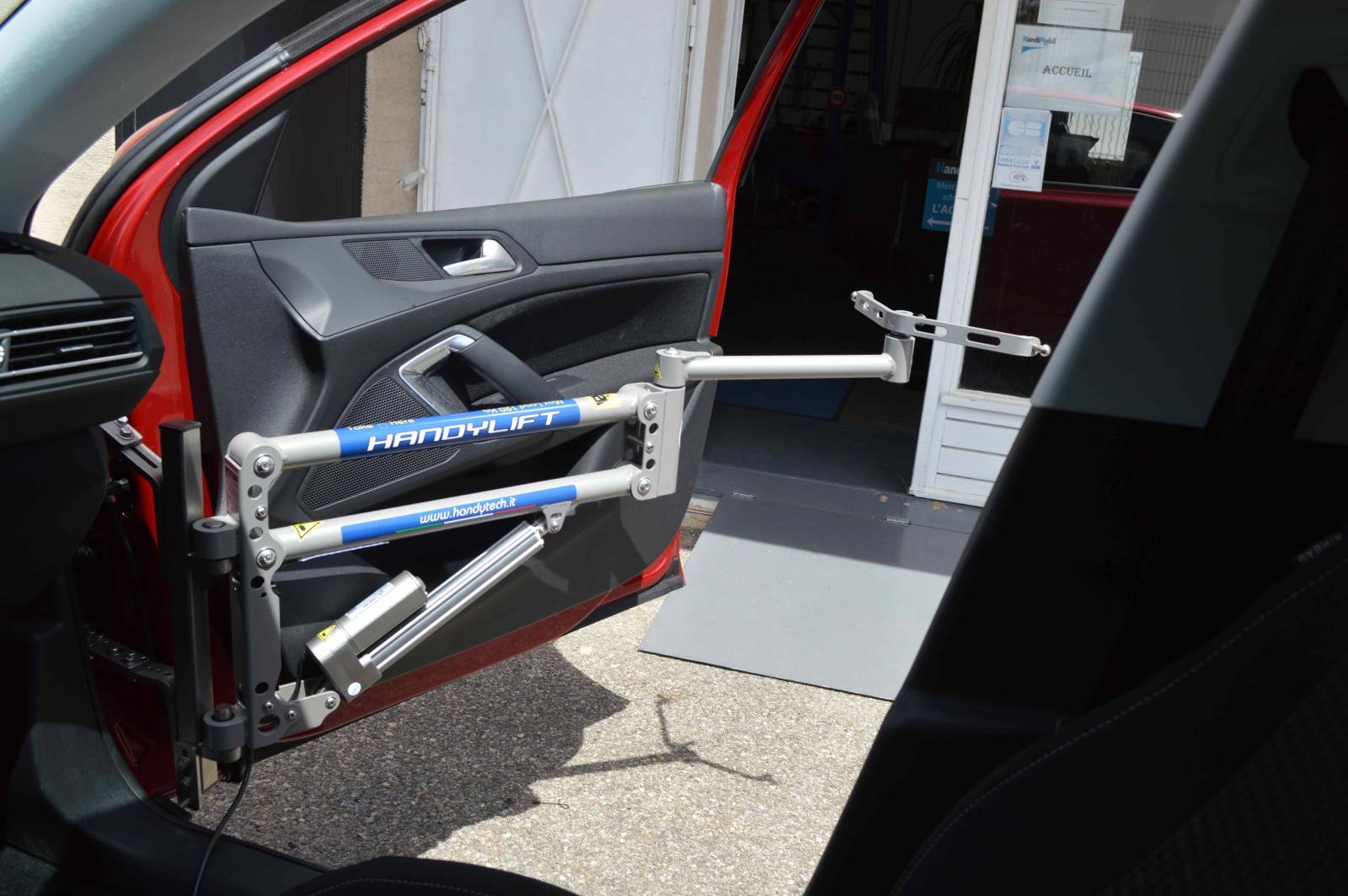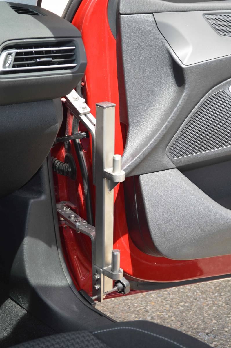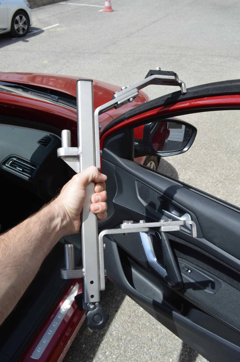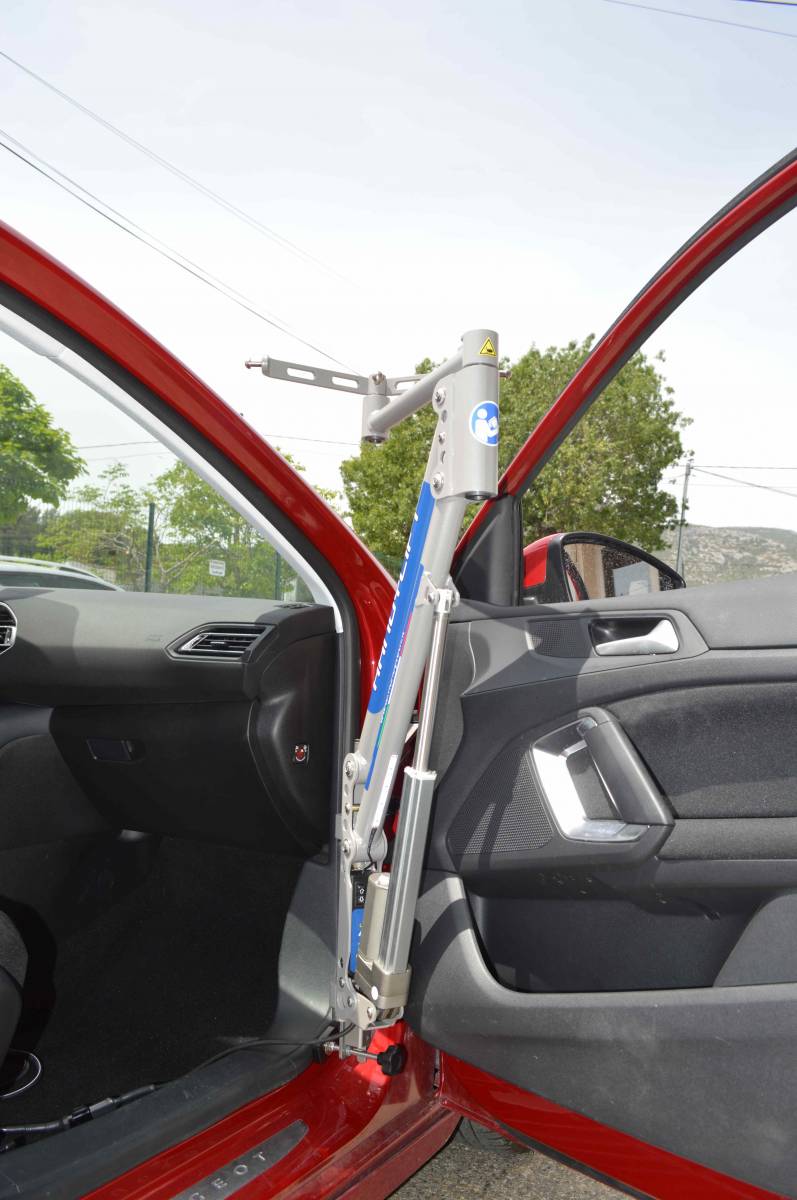 Son support est amovible, et se pose provisoirement sur les charnières de la porte passager, et il sera ensuite être enlevé après le transfert de la personne handicapée.