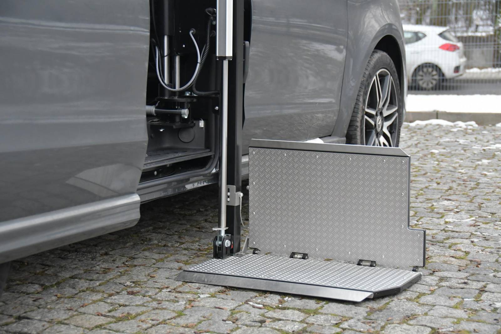 Unique en son genre, Le HELP V car il peut s'installer en correspondance de la porte coulissante droite de la plupart des vans, monospaces et fourgons circulant sur nos routes. LA condition sine qua non est que votre véhicule présente une largeur d'ouverture de porte coulissante d’au moins 1050 mm.