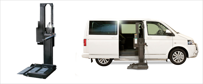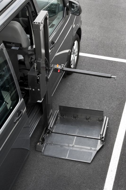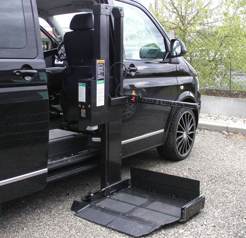 Le hayon élévateur « Swing-a-way » résout les problèmes d’accès au véhicule pour toutes personnes en fauteuil roulant, manuel, électrique (propulsion roues arrière) ou scooter.