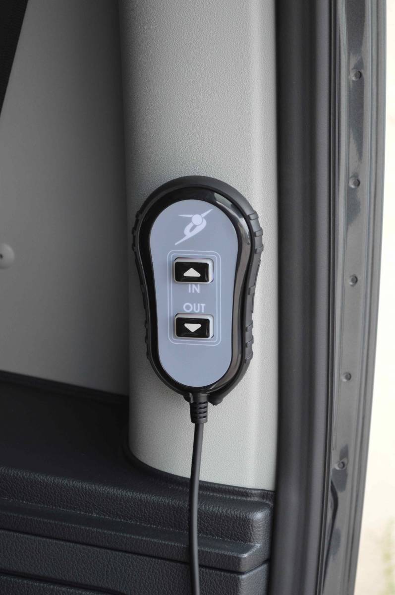 Le Joey Lift a la particularité d’intégrer un système de retenue par sangles voué à maintenir et à sécuriser le fauteuil roulant ou le scooter pendant son transfert et son transport.