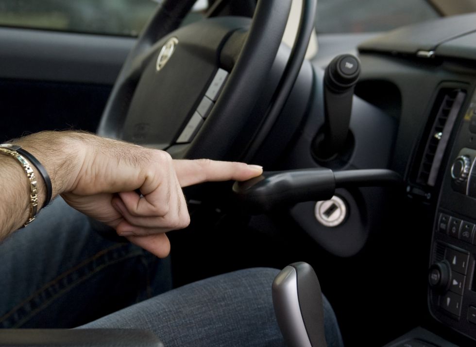Sous le pommeau du levier de frein se trouve une série de trois interrupteurs vous permettant d’actionner, respectivement, un mode éco (de série) et l’avertisseur sonore ainsi qu'un blocage du frein (optionnels). Ce dernier est efficient quand on l’associe à un système d’accélération.