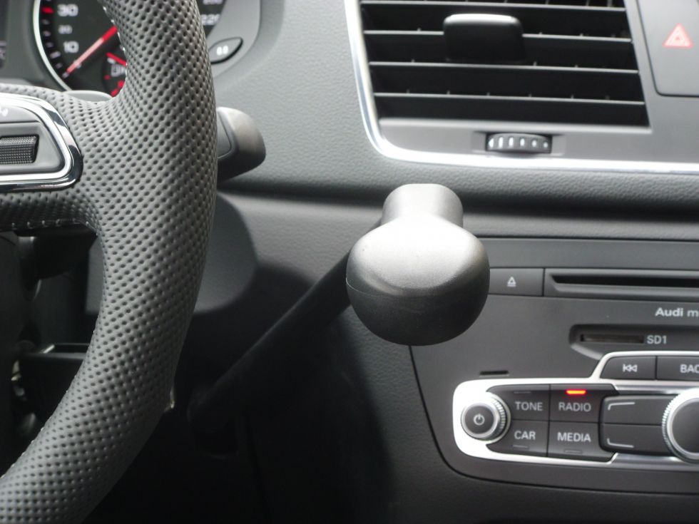Ce levier de frein créé sur mesure dans les ateliers de HANDI MOBIL, spécifiquement pour vos besoins et, en accord avec votre voiture, s’associe généralement à d’autres installations de conduite au volant, telles qu’un cercle accélérateur ou encore des manettes.