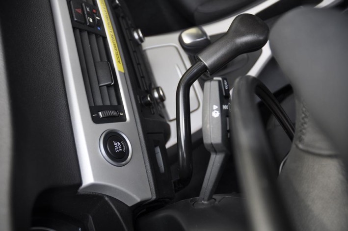 Sous le pommeau du levier de frein se trouvent trois interrupteurs activant respectivement, l’avertisseur sonore, un frein de stationnement ainsi qu’un mode « Eco ».