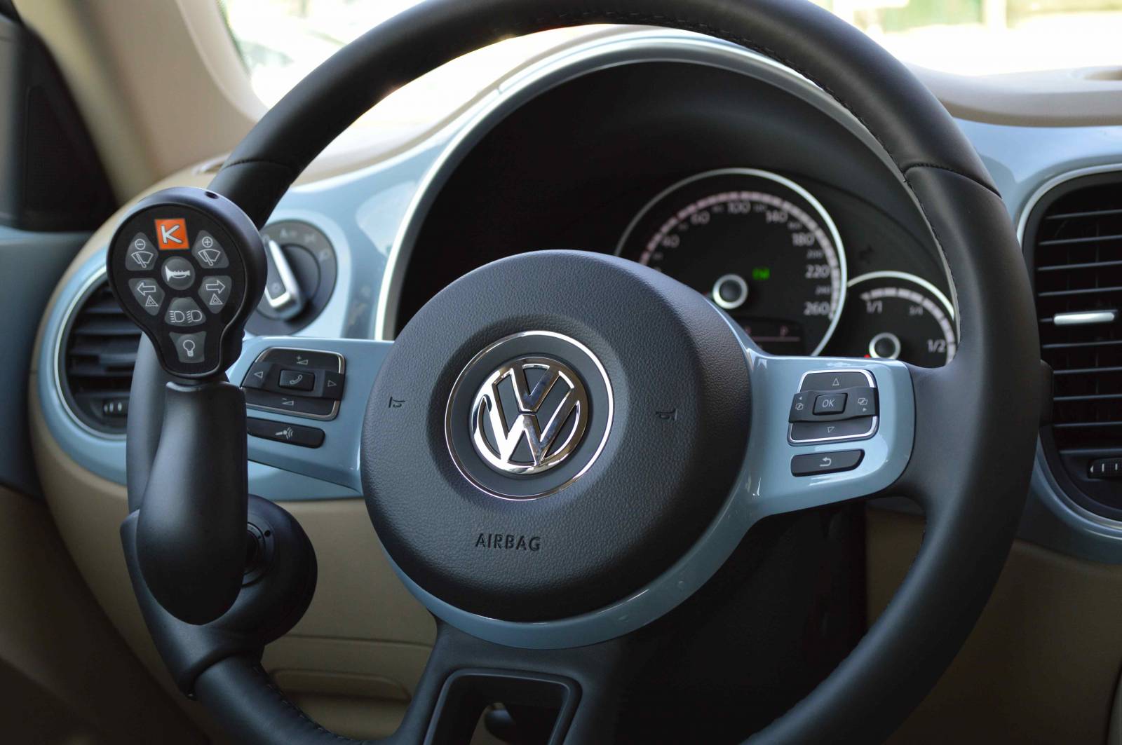 Cette installation au volant destinée aux personnes à mobilité réduite n’interdit pas la conduite par un conducteur valide.