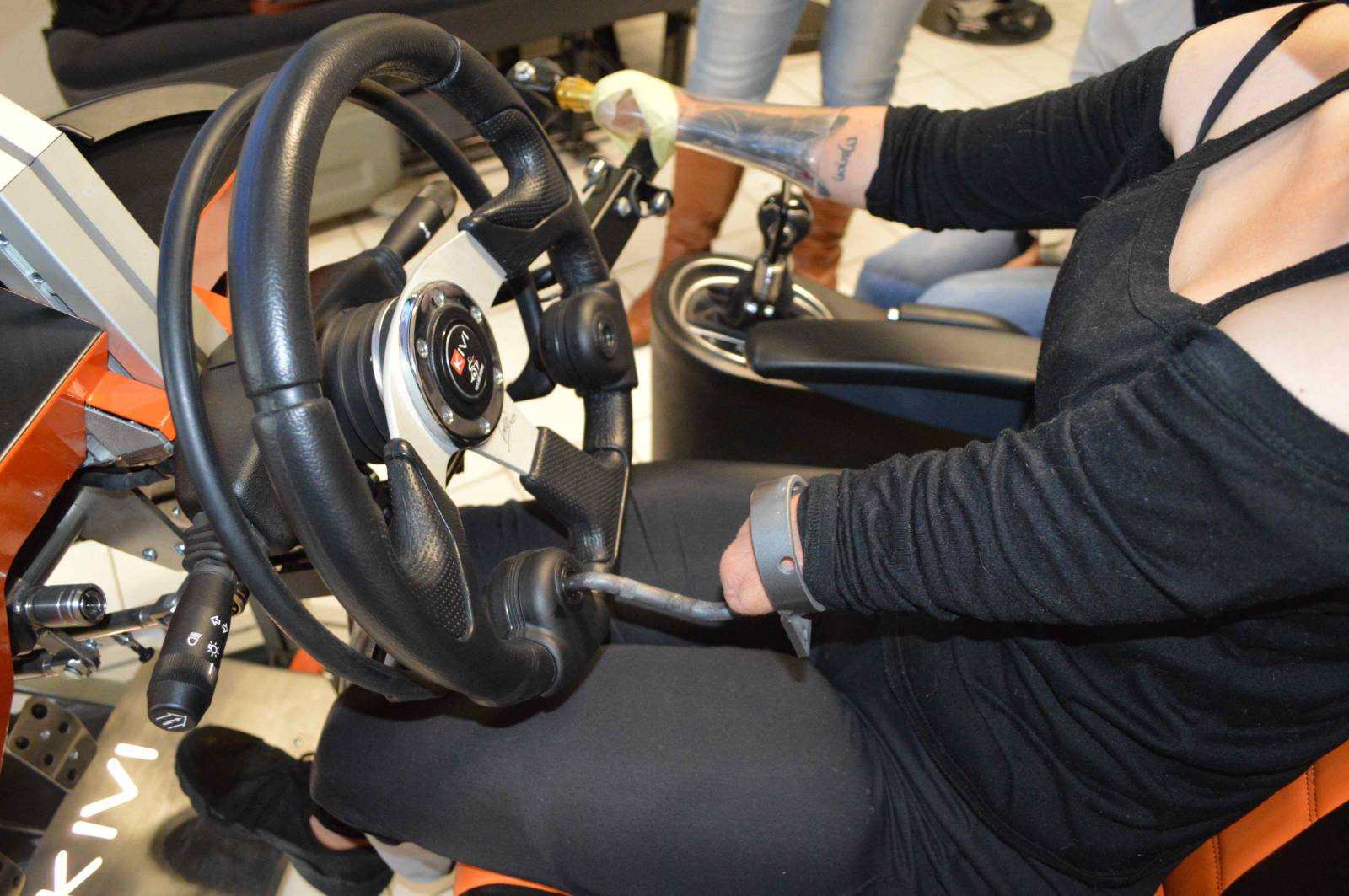 Grâce à notre simulateur de conduite pour personnes en situation de handicap, nous avons pu faire conduile également des personnes ayant subi une quadri-amputation(quadri amputés) .