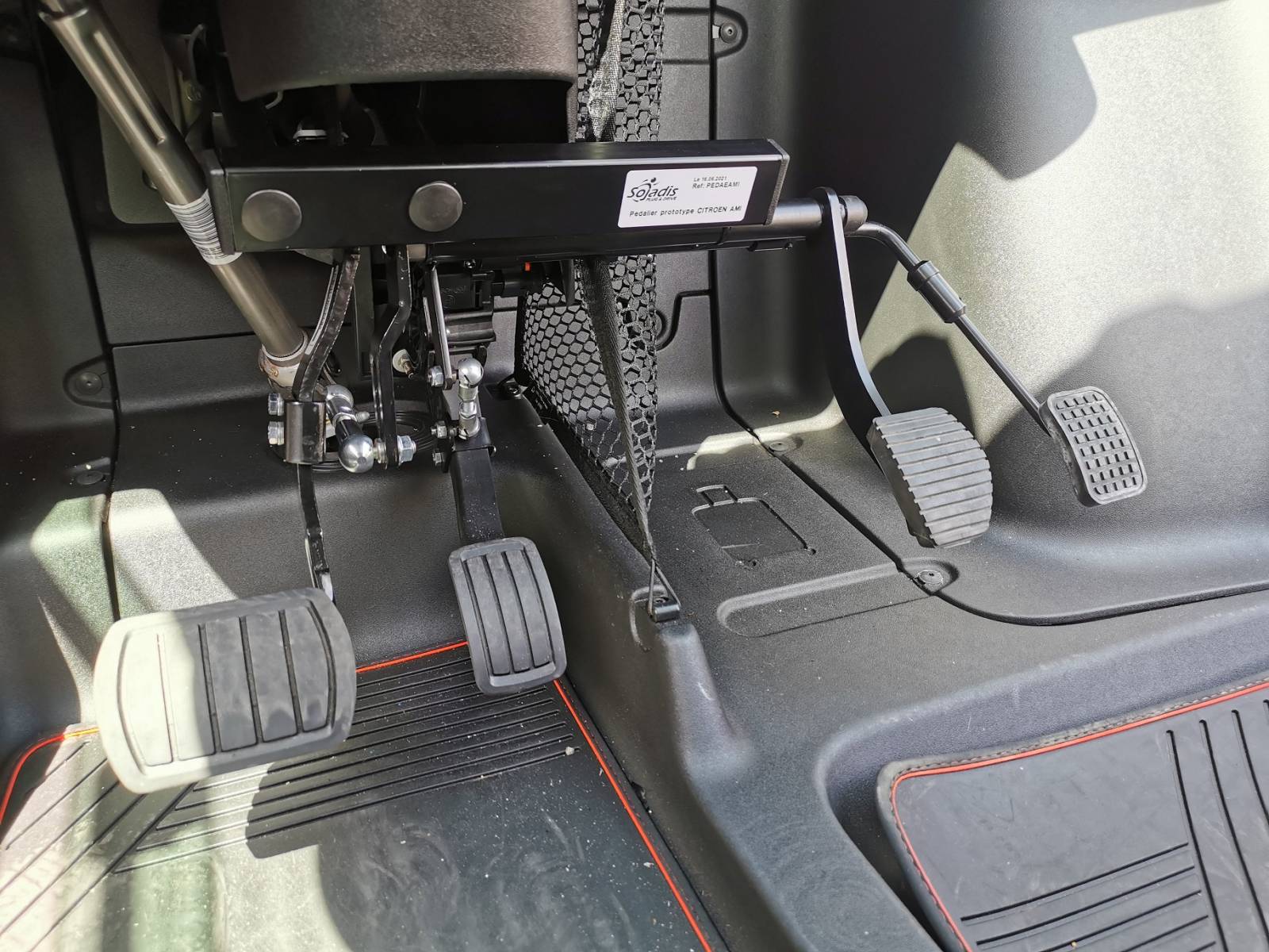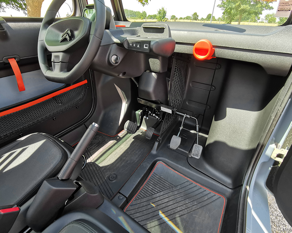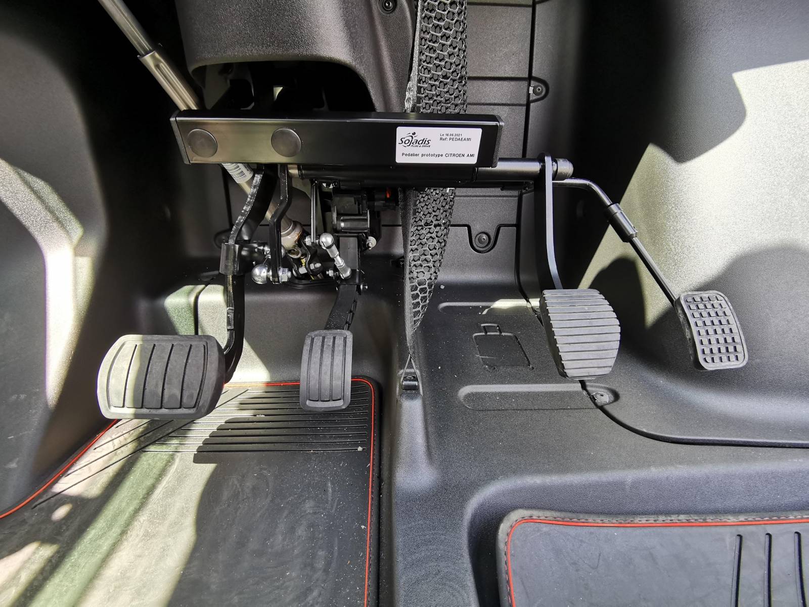 Transformation de CITROEN AMI, voiture sans permis électrique avec double pédalier par tringle sur Marseille dans les Bouches du Rhône.