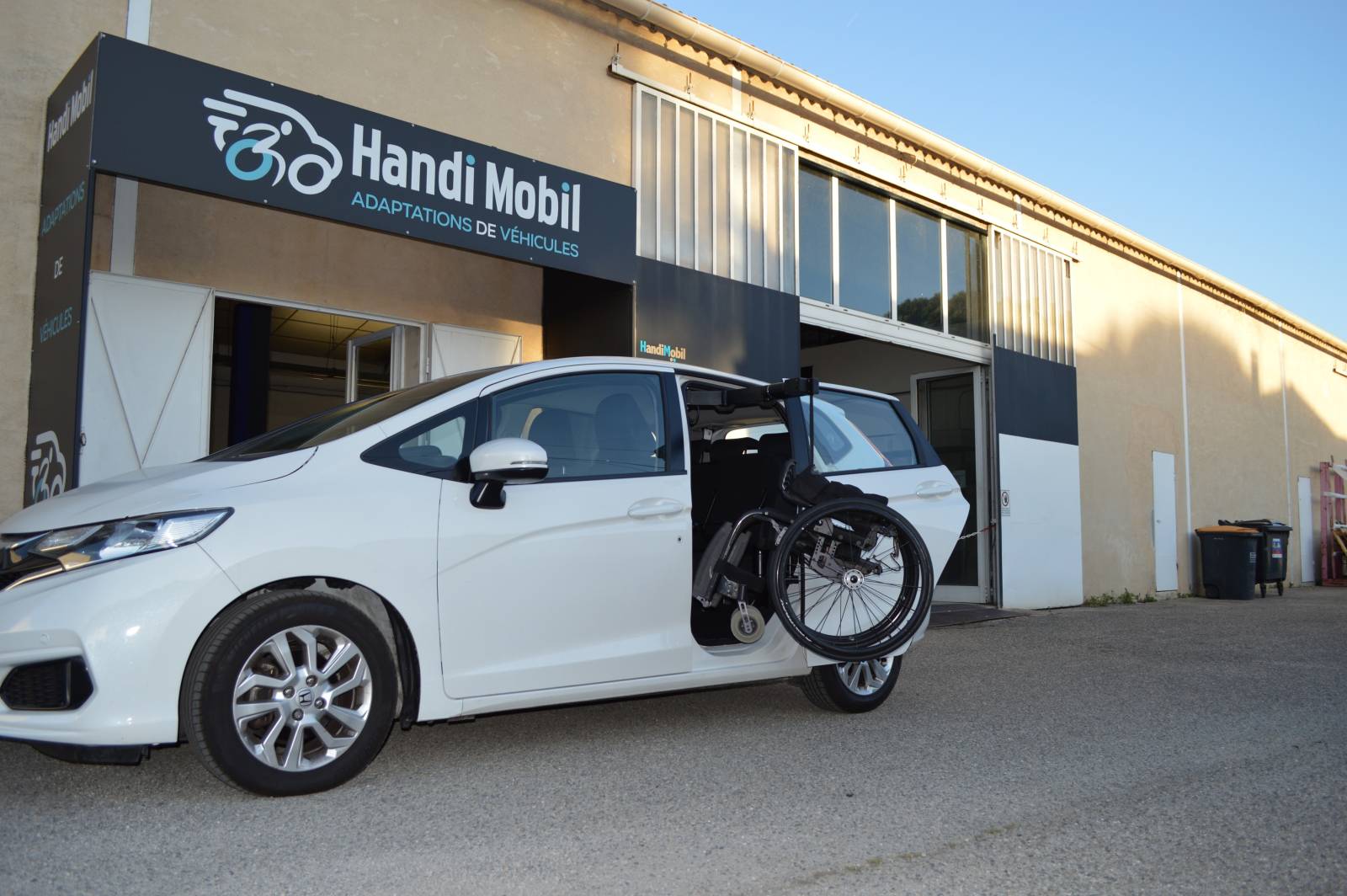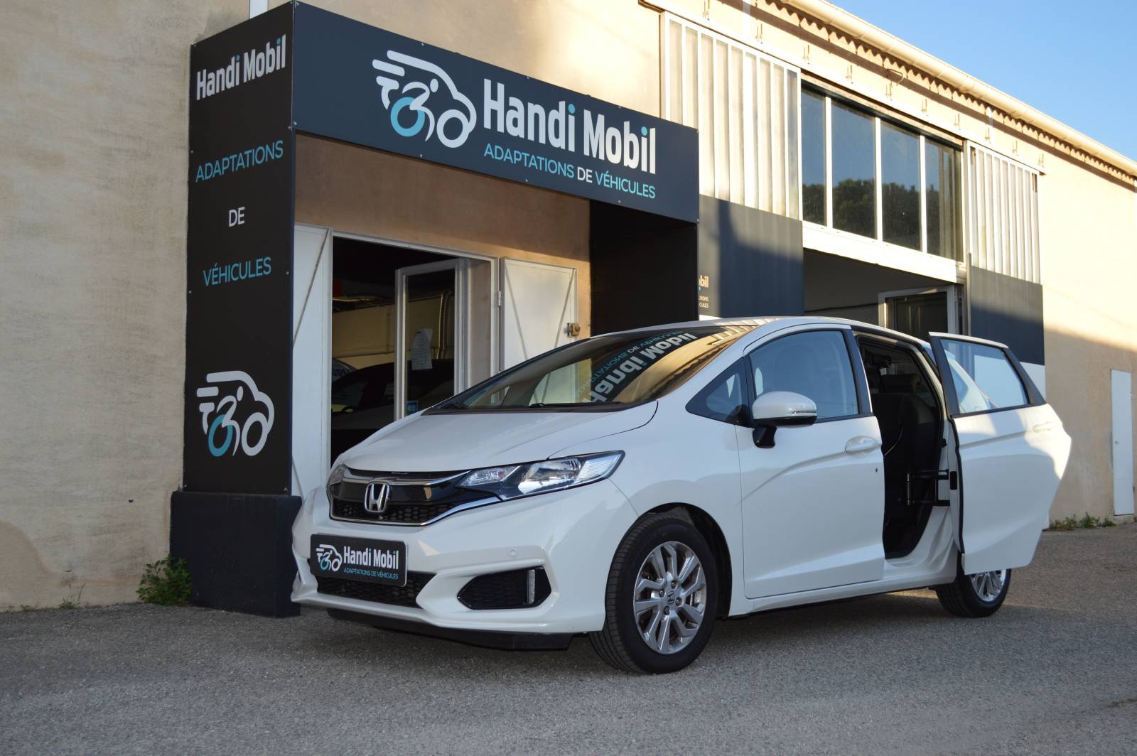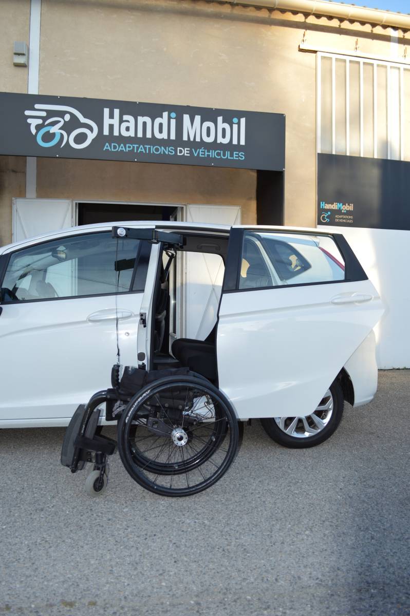 Transformation de HONDA JAZZ avec porte escamotable et treuil de chargement du fauteuil roulant pour une totale autonomie su Marseille dans les Bouches du Rhône