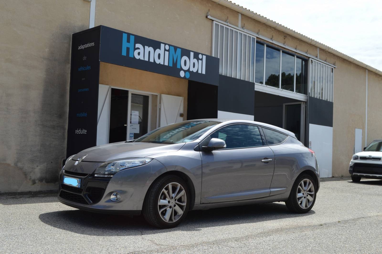 Mégane Coupé en très bon état, factures à l'appui, équipée d'un levier de frein vertical (possibilité d'intégrer avec d'autres aménagements). Toujours garé dans garage.