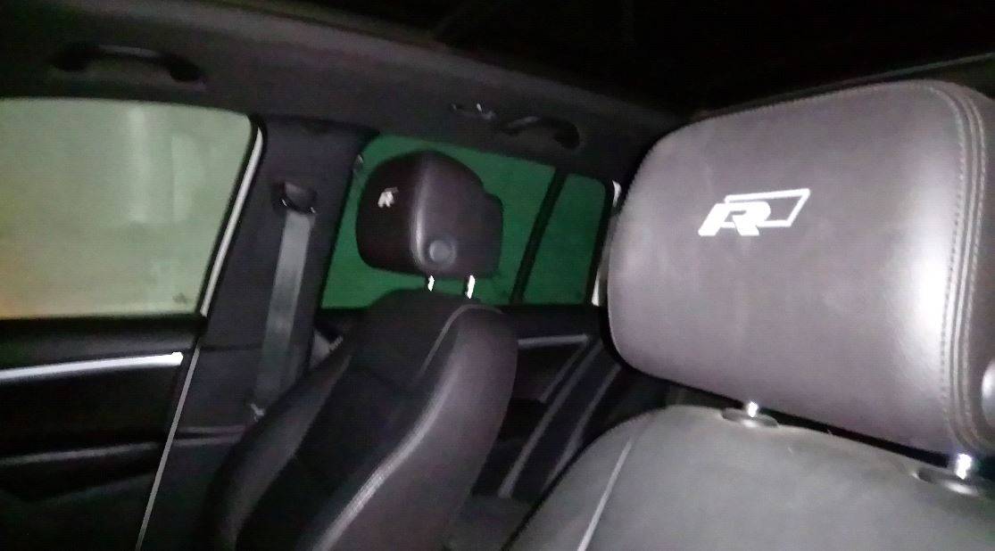 - sièges cuirs Vierra Noir Titane siglés R Line sur les appuis tête avant